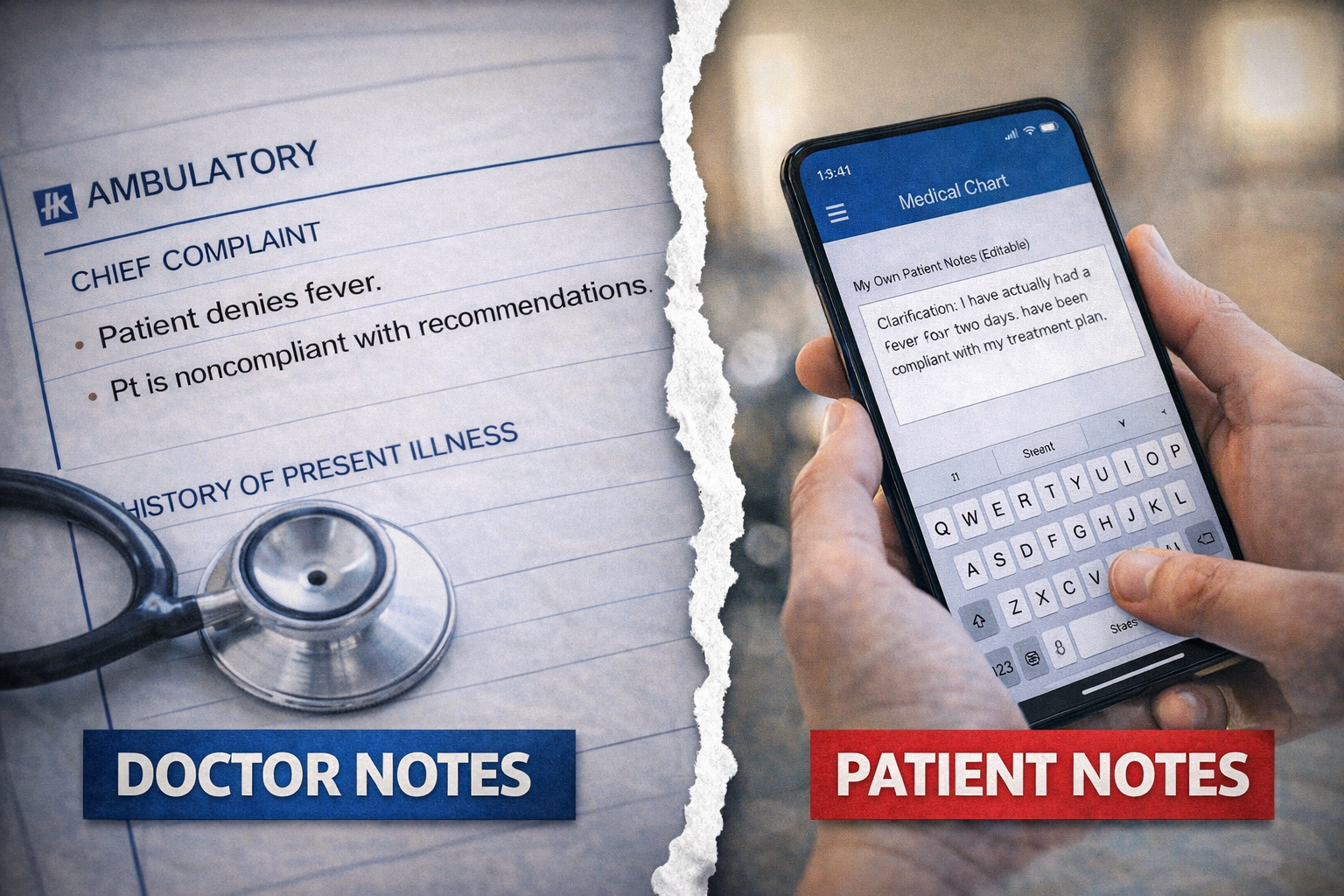 When I took a poll from the general public of the accuracy of the notes in their recent hospital stays (for those who had to visit the ER), 95% said there were errors. Most reported errors with even why they were being seen. This comes down to everything from communication with EMS (if applicable), triage (if applicable), doctors, nurses, and techs. Having errors is understandable; however, for this reason, patients should have the ability to correct these errors or at least enter their own remarks / rebuttals. Or, they may even agree with the doctors and nurses with their notes and would like to voice their agreement.